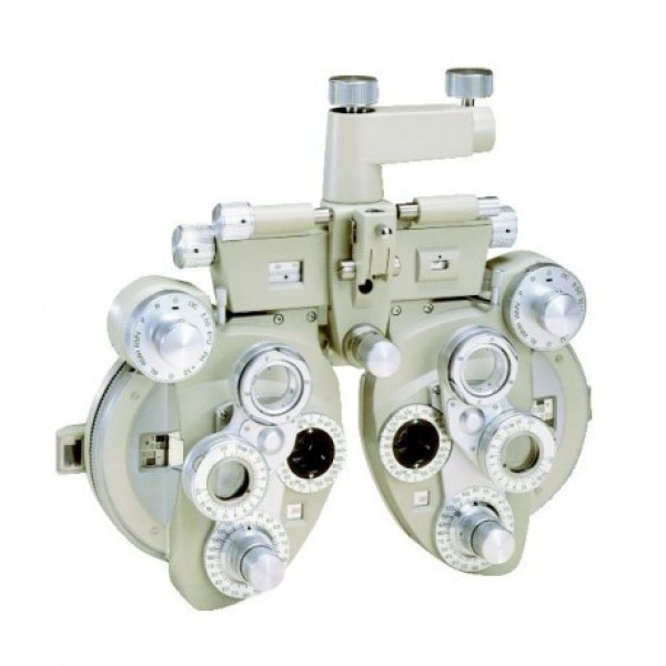 Poder de la esfera: Rango +16.75 a -19.00D Paso: 0.25D Potencia del cilíndro: rango: 0.00D a -6.00D (0.00D a 8.00D con lente adicional de-2.00D) Paso: 0.25D Eje del cilindro de 0 a 180 °, pasos de 5 ° Cilindro cruzado ± 25 dioptrías. Lente de cilindro cruzado ± 0.25D Prismas rotativos 0 a 20, 1 pasos P.D. ajuste 48-75 mm, pasos de 1 mm Accesorio estándar Una tarjeta de punto cercano con soporte y varilla, cubierta antipolvo, careta y estuche para lentes. Lente de acceso estándar Dos lentes de cilindro .12D y -2.00. Dos lentes planos para sellado de apertura frontal Dimensiones 345 × 350 × 155 (mm).